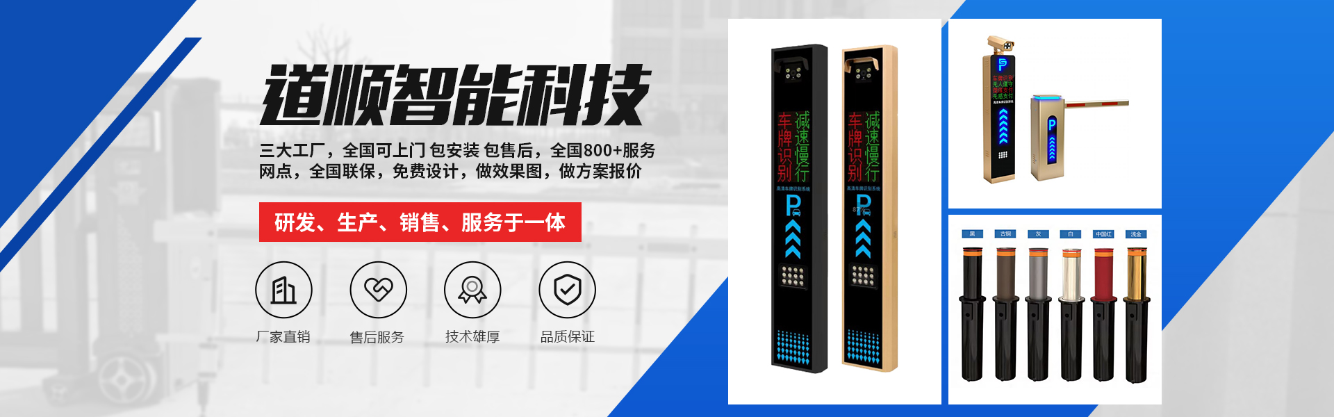 道順智能創(chuàng)立于2012年,是一家專業(yè)從事智慧停車解決方案、智慧社區(qū)解決方案和設(shè)備軟件與藍(lán)牙車牌識別、藍(lán)牙道閘、藍(lán)牙廣告道閘藍(lán)牙廣告門、藍(lán)牙通道閘、藍(lán)牙門禁梯控、人臉識別等藍(lán)牙系列多元化安防產(chǎn)品硬件研發(fā)、生產(chǎn)、銷售、服務(wù)于一體的 高新技術(shù)企業(yè)。